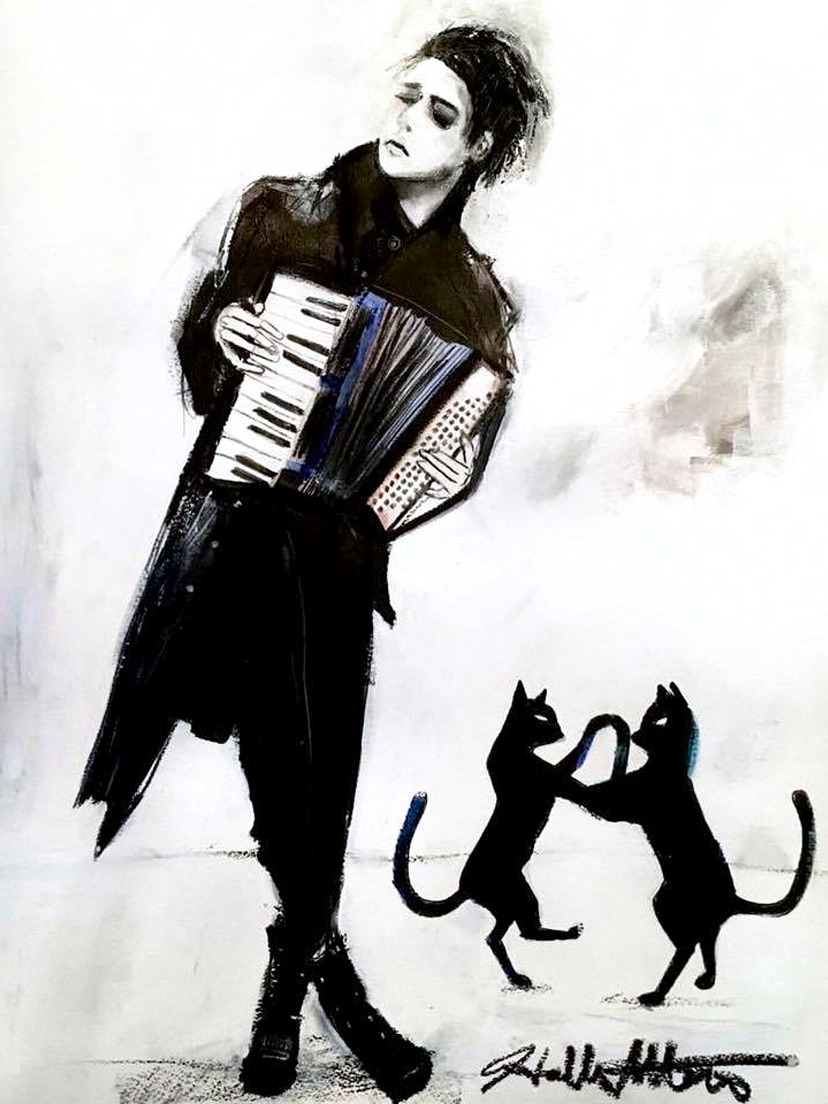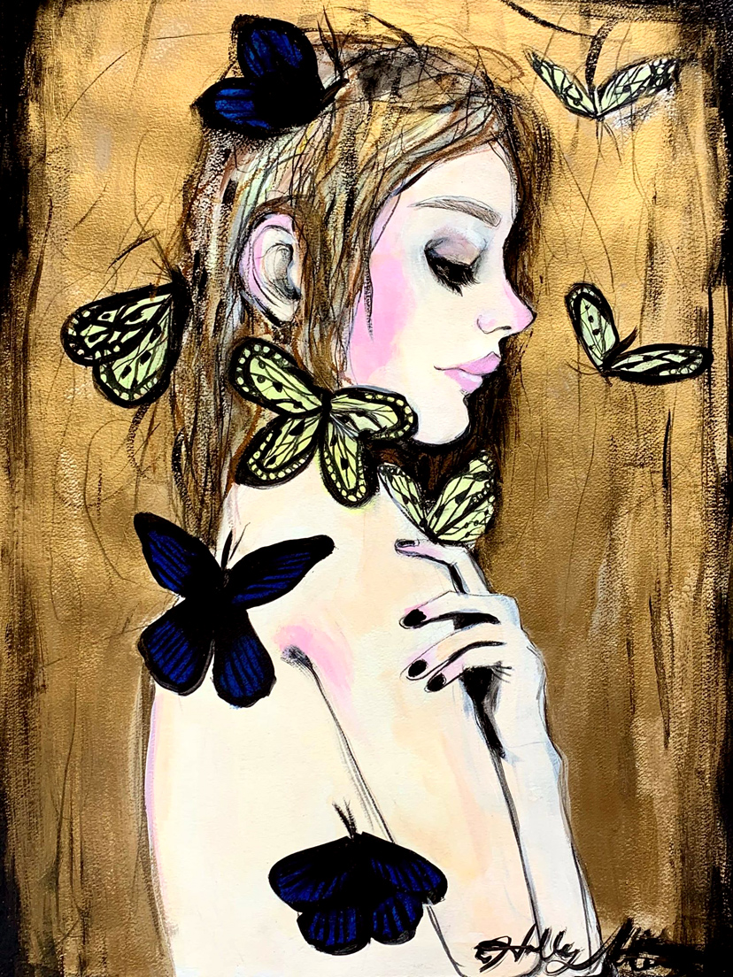 Holly Albright studied at St. Martin’s College of Art and Design in London where she honed her artistic and sartorial skills while living in the cultural capital of Western Europe. Going on to work for and with Alexander McQueen, Julien McDonald, Giles Deacon, Emilio de la Mora and Pam Hogg, she couldn’t fail to be influenced by London’s pervasive music, fashion and art scenes, all of which continue to inspire her painting and other work today. Simultaneously, adding to those influences was another side of the city — a side which can be found in all cities — the shady characters of the nightlife underworld, the nightclubs and the dive bars where she bore witness to the dark desires of magnetic yet narcissistic strangers — the shadowy glamour of hidden social scenes, which all too often appeared seedy in the cold reality of daylight. The interchange between the sexes — the yin and the yang, the ego and the id, the smoke and mirrors — all of this fascinated Holly. Her inner world has been endlessly sculpted by her own personal experiences, all of which continue to influence everything she creates. Holly’s pieces are stream-of-consciousness dreamscapes — hallucinatory experiences that evoke the genius and vision of Klimt, Schiele, Picasso, Dali, Magritte, Basquiat and LaChapelle; their trademark styles are imprinted on and recognized by the collective psyche — high art meets Pop art. Hitchcock, 1990s supermodels, Gatsby, film noir, pulp fiction, Betty Page, Louise Brooks, taxidermy, Gil Elvgren’s pin-up girls, Blade Runner, burlesque — they all seem to infiltrate the imagery of Holly’s work, whether she’s producing illustrations or large-scale painting. |